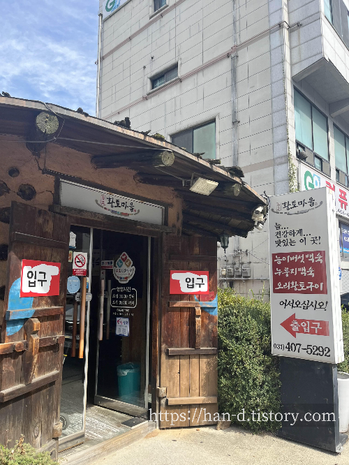 음식점은 도로에서는 잘 보이지 않지만, 동네 안쪽으로 들어오면 안 보이기 쉽지 않을 만큼 간판이 큼지막하게 있어 쉽게 발견할 수 있다.