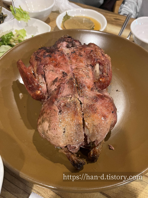 4인이 방문 한다면 오리진흙구이 1마리와 능이삼계탕(식사용) 또는 사이드메뉴를 주문하면 4명도 배부르게 먹을 수 있었습니다.