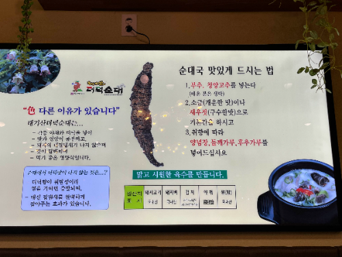 메뉴가 생각보다 꽤 많다. 하지만 어느 식당이던 처음에는 기본이 중요하다. 그래서 토종순댓국을 주문해 보았다.