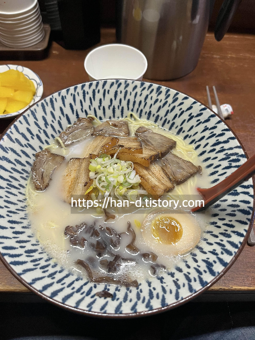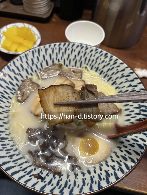 차슈는 부드럽고 숙주나물과 파향이 라멘의 풍미를 더욱 살려주어 맛있었습니다.