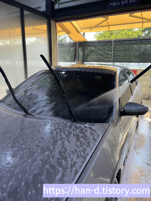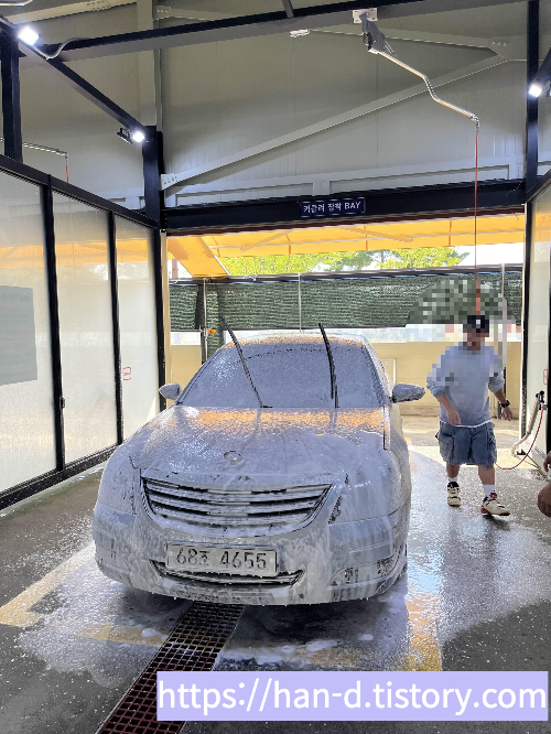 한번 카드 태그로 보통 고압세척과 스노우폼 건까지 진행하고 잠시 기다려 준다.