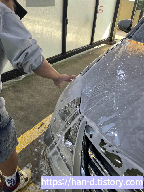 스노폼건으로 차에 넉넉하고 꼼꼼하게 도포해준다