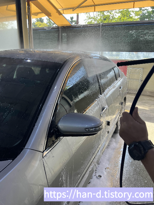 고압 헹굼까지 마치면 세차의 90%가 끝났다.