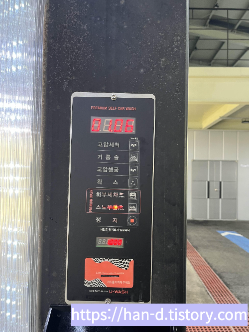 이번에는 다행히 친구가 카드를 가지고 있어서 현금만 충전해서 셀프 세차장을 이용해 보았다.