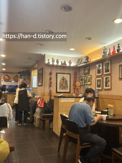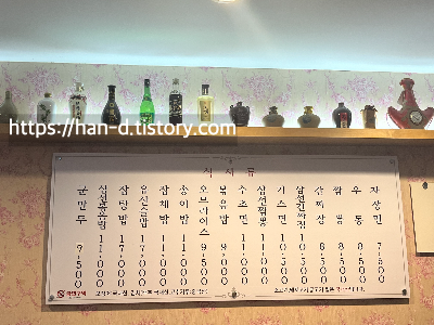 입구를 들어가니 내부가 넓지는 않았지만 깔끔한 디자인으로 테이블은 5-6명이 앉을 수 있는 원형테이블, 2-4명이 앉을 수 있는 사각 테이블로 구성되어 있으며, 비가 와서 그런지 반주를 거하게 하는 테이블도 있었다