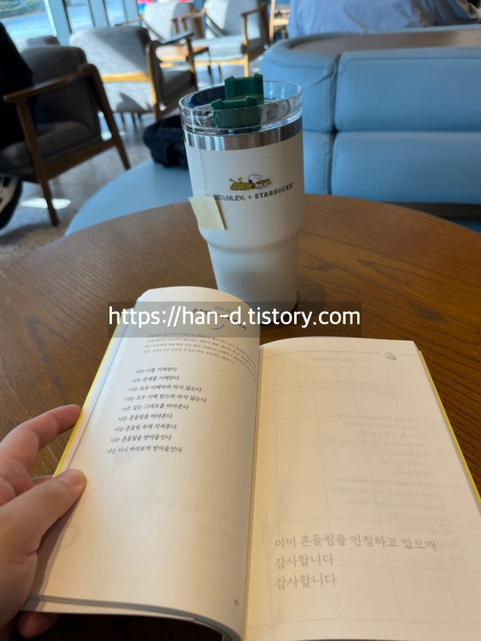 일요일 오전 마음먹고 스타벅스로 향하면서 인생을 바꾸는 100일 마음 챙김 책을 챙겼다.