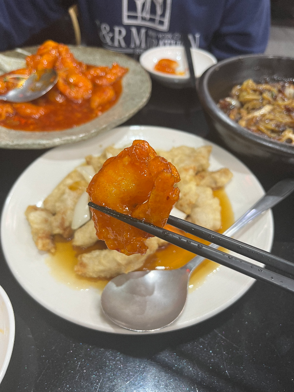 칠리새우, 가장 기대가 컸던 칠리새우는 딱2개까지가 맛있었습니다. 2개 이상부터는 물리는 맛이었어요. 그냥 여럿이 와서 사이드메뉴로 시키면 좋을 것 같아요. 사실 칠리새우가 주 메뉴였었는데, 맛이 기대에 미치지 못해 살짝 아쉬웠습니다.