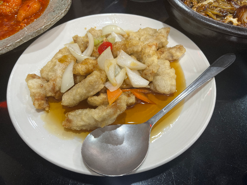 탕수육, 탕수육맛은 그다지 맛있거나 특별하지는 않았습니다. 그냥 주변에서 흔히 먹어볼 수 있는 그 정도의 맛이었습니다.
