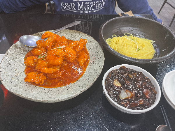 천주채관 인기메뉴라는 간짜장과 탕수육 그리고 칠리새우를 주문하였습니다. 메뉴는 빠르게 나오는 편입니다.