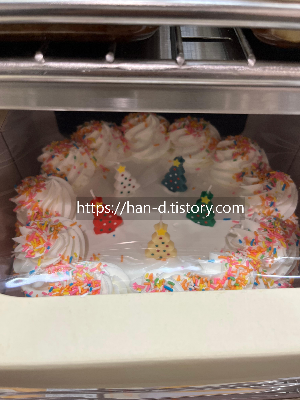 코스트코 베이커리 코너에서 이 케이크를 처음 마주하면 일단 크기에 놀라게 됩니다. 웬만한 프랜차이즈 3호 이상의 사이즈인데 가격은 2만 원대 중반(매장가 기준, 저는 27000원 정도로 구매)이죠. 요즘 유행하는 레터링 케이크나 호텔 케이크 가격의 절반도 안 되는 수준입니다.