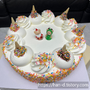 디자인은 군더더기 없이 깔끔한 화이트 아이싱으로 덮여 있어 첫인상이 아주 단정합니다. 화려한 장식은 없지만, 오히려 그 점이 '기본에 충실한 맛'을 기대하게 만들더라고요. 무게감 또한 묵직해서 여럿이 모이는 파티용으로는 이만한 선택지가 없습니다.