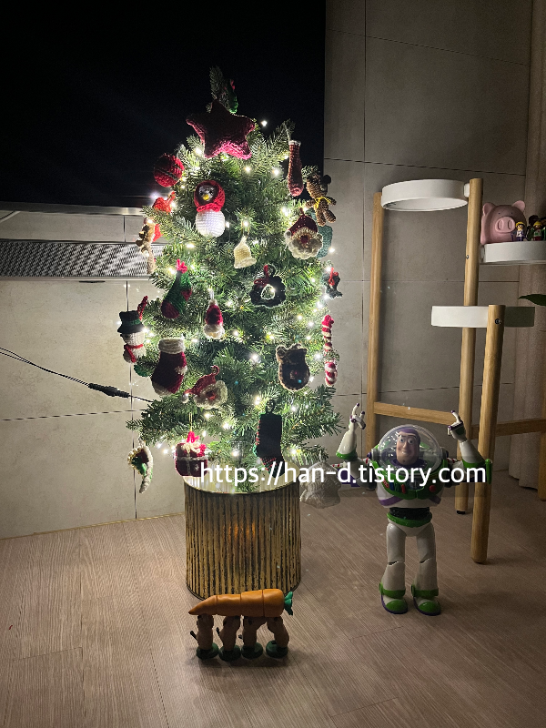 고생한 만큼 뿌듯함이랄까요? 트리 위에 직접 만든 장식들이 더해지니, 이번 크리스마스트리는 더욱 특별하고 소중하게 느껴집니다.